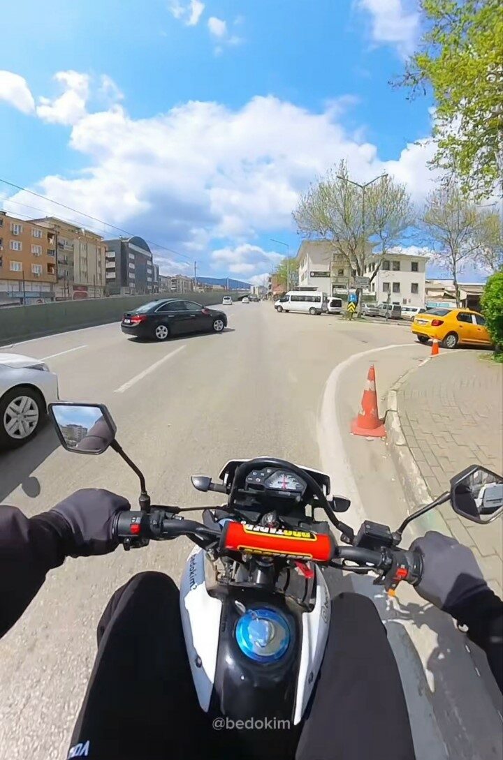 Merkez Yıldırım ilçesinde seyir halinde olan motosiklet, orta şeritte ilerleyen bir otomobilin Anadolu Caddesi’ne dönüş yaptığı sırada araca çarptı. Çarpmanın etkisiyle motosiklet sürücüsü yere yığılırken, yaşananlar kask kamerası tarafından kaydedildi.