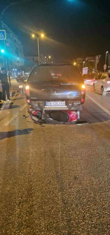 Kaza saat 23.00 sıralarında İnegöl-Alanyurt yolu üzerinde meydana geldi. Alanyurt’tan İnegöl istikametine seyir halinde olan Yağız S. (17) yönetimindeki 16 AKU 256 plakalı motosiklet, sürücüsünün kontrolünden çıkarak devrildi. Devrilen motosiklet, sürüklenerek kırmızı ışıkta bekleyen sürücü Hüseyin Y.(48) yönetimindeki 16 CBJ 69 plakalı kamyonetin altına girdi. Kaza yerine 112, polis ve itfaiye ekipleri sevk edildi. Motosikletin sürücüsü hafif şekilde yaralandı. Yaralı kaza yerine sevk edilen ambulansla İnegöl Devlet Hastanesine kaldırıldı.