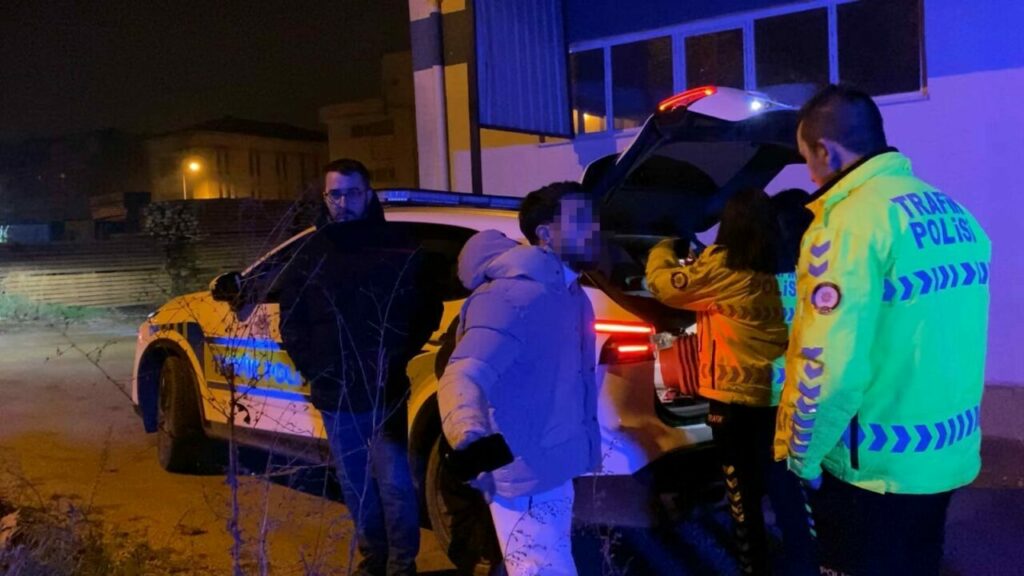 Bursa’nın İnegöl ilçesinde trafik polislerinin durdurduğu alkollü sürücü ve arkadaşı