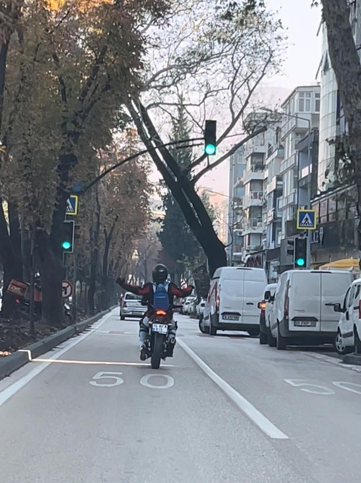 Merkez Osmangazi ilçesi Kükürtlü Caddesi üzerinde iki arkadaş motosikletleriyle trafiğe çıktı. Gençler motosikletlerin üzerinde seyir halindeyken direksiyonu bırakıp dans etmeye başladı. Dakikalarca trafiği tehlikeye atan kişiler, hem kendi hem de başkalarının canını hiçe saydı. Görüntüler üzerine harekete geçen sivil trafik polisleri, sürücüleri tespit etti. Sürücüleri yakalayan polis ekibi, iki şahsa toplam 3 bin 646 idari ceza uygulanırken, ehliyet puanlarından da 30 puan düşürüldü.