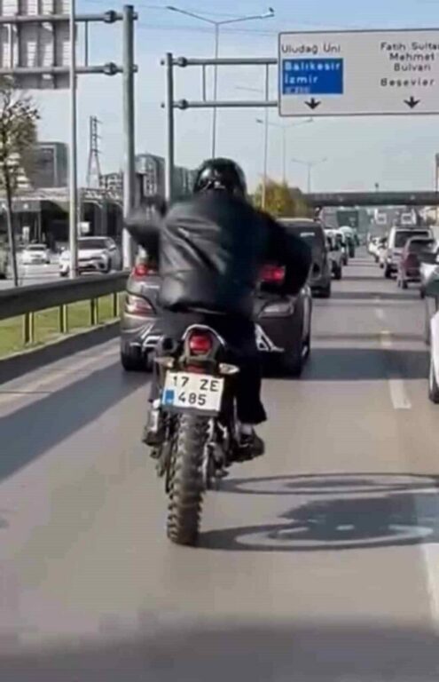 Yoğun trafikte araçların arasından kıvrak hareketlerle geçen sürücünün, motosikleti bir ulaşım aracı gibi değil de adeta bir gösteri sahnesi gibi kullandığı gözlendi. Sürücünün kimliği henüz tespit edilemezken, polis olayla ilgili çalışma başlattı.