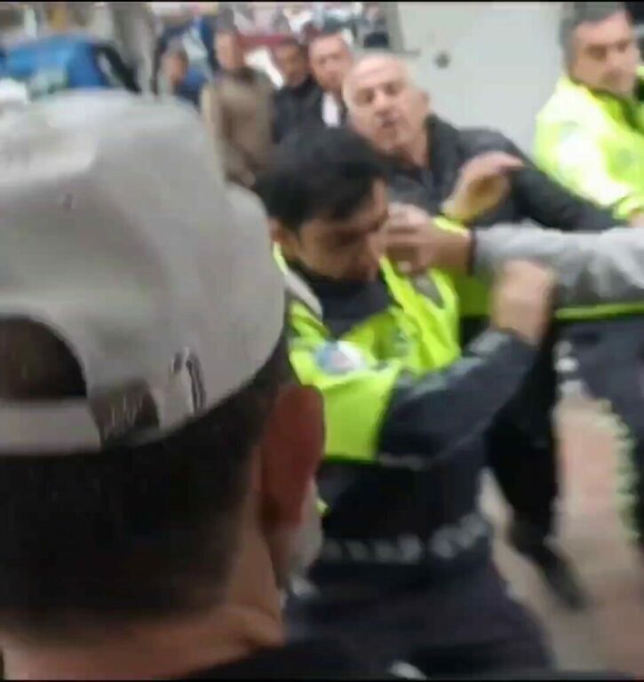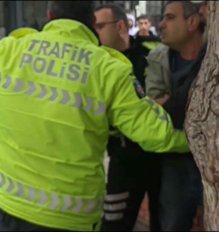 Bursa’nın Orhangazi ilçesinde uygulama yapan trafik polisleri, plakasız olduğu fark ettikleri bir motosikleti durdurdu. Sürücüye işlem yapılırken, yazılan idari ceza sonrası tansiyon arttı. Polis ekipleriyle tartışma yaşayan sürücü, kendisine ceza yazan memura yumrukla saldırdı. O anlar kameraya saniye saniye yansırken, araç sahibi gözaltına alındı. Motosiklet ise trafikten men edildi.