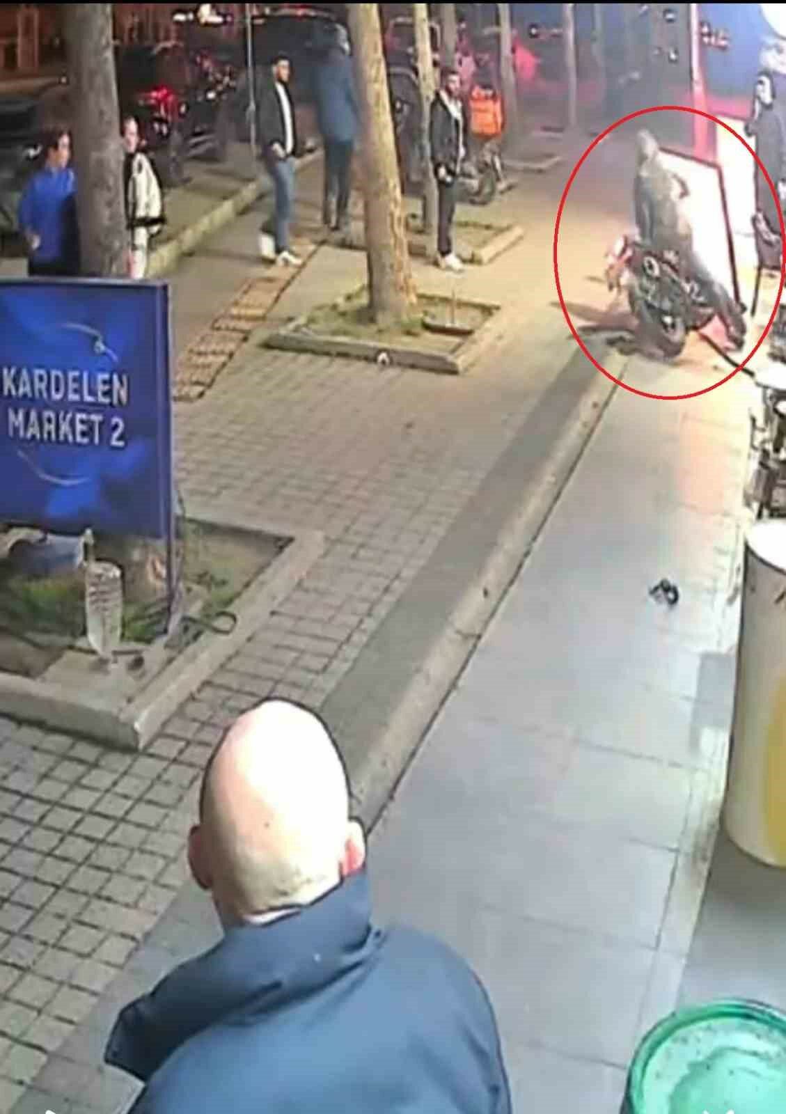 Bursa’nın Nilüfer ilçesinde kaldırımda giden motosiklet sürücüsü bir kadın, dengesini kaybedip kaza yapınca çevredekiler yardımına koştu. Daha sonra hiçbir şey olmamış gibi tekel bayiye giren kadın, alkol aldıktan sonra dışarı çıktı. Bu sırada kendisine yardım eden kişileri gören şüpheli, kadınları saçından tutup darp etti. İlginç anlar kameraya anbean yansıdı. Görgü tanıkları dehşet dolu anları anlattı.