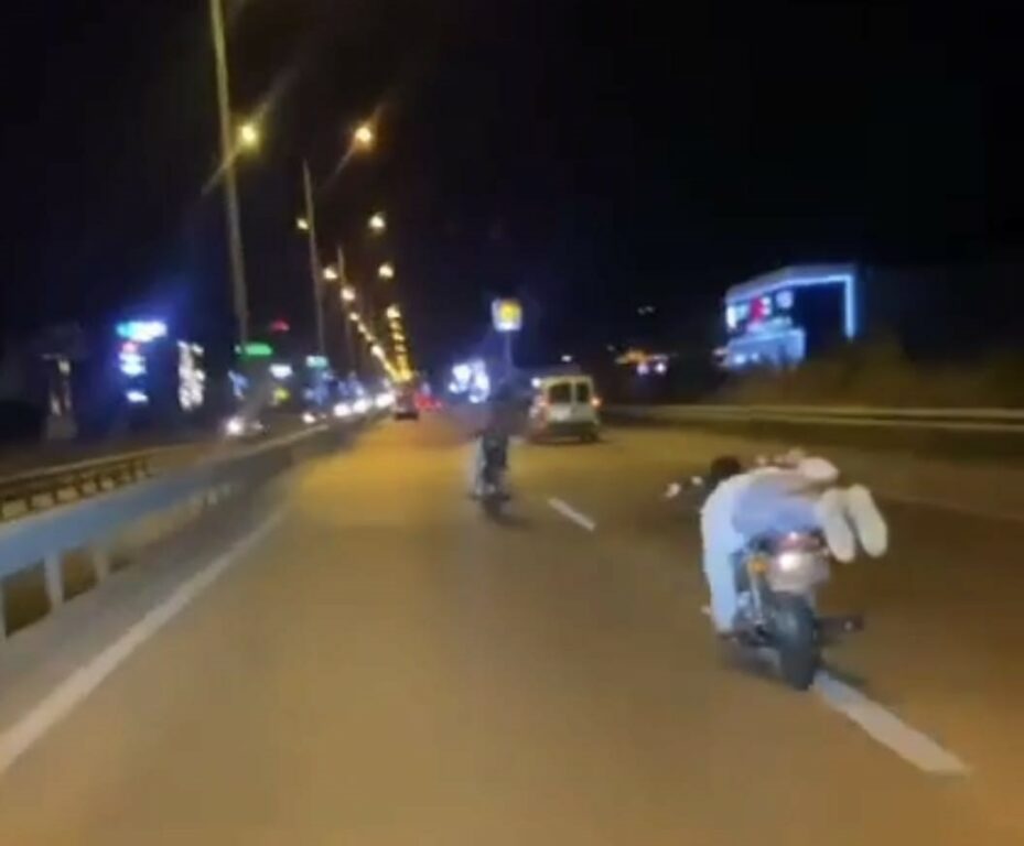 Olay, Bursa-Ankara karayolu üzeri İnegöl girişinde meydana geldi. Sürücüleri tespit edilemeyen 2 genç, karayolu üzerinde motosikletlerinin üzerine yatarak yarış yapmaya başladı. Sol şeritte birbirine yakın şekilde yarışan gençler, araçları da tehlikeli ve hatalı şekilde solladı. Gençlerin 150 kilometre hıza ulaştıkları ise diğer bir motosiklet sürücüsü tarafından görüntülendi.