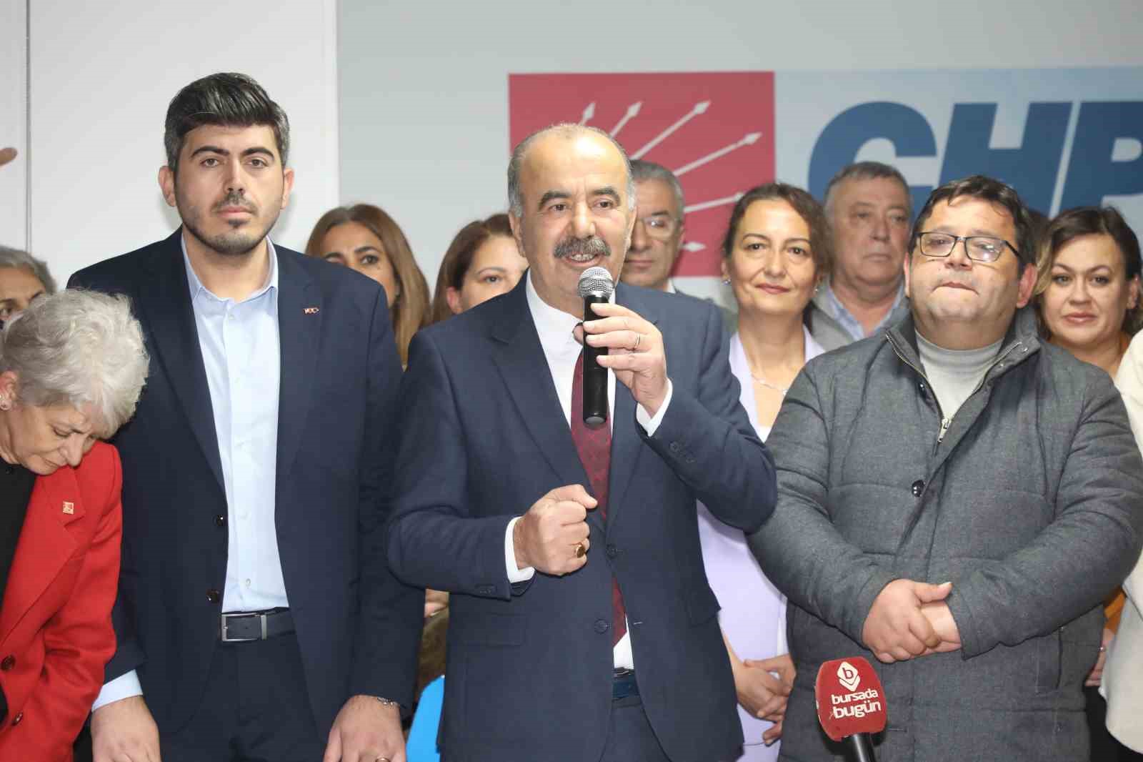 CHP Mudanya İlçe binasını dolduran partililere seslenen Hayri Türkyılmaz, göreve başlarken Mudanyalılara verdiği sözleri hatırlatarak, “Bugün benim için önemli bir gün. 10 yıl önce Mudanyamıza hizmet noktasında girdiğim ön seçimi tüm engellemelere rağmen kazandım ve ardından 30 Mart 2014 Yerel Seçimlerinde 25 yıl aradan sonra CHP’den Mudanya Belediye Başkanı seçildim. Kültürden sanata, sosyal belediyecilik örneklerinden turizme her alanda onlarca projeyi söz verdiğim gibi hayata geçirdim. Kentimizin geleceğini şekillendiren projelerimizi değerli hemşehrilerimle buluşturduk. Sponsor kullanmadan, bir kuruşluk işi bir kuruşa yaparak, alın terimizle çalıştık. Mudanya’da ilkleri gerçekleştirdik. Ürettiğimizi hakça paylaştık, büyüttük. Unutmayın ki dinlenmemek üzere yola çıkanlar, asla yorulmazlar.30 Mart 2014’te gururla diktiğimiz CHP bayrağını bir daha indirmemek üzere görev yaptık, görev yapmaya da devam edeceğiz” diye konuştu.