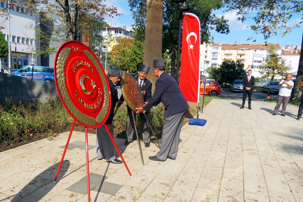 Bursa’nın Mudanya ilçesinde 19 Eylül Gaziler Günü çerçevesinde düzenlenen tören İskele Meydanında yapıldı. Tören Atatürk Anıtına çelenk sunumu ile başladı. Törene, Kaymakam Ayhan Terzi, Cumhuriyet Başsavcısı Gökhan Aydoğan, Mudanya Belediye Başkanı Deniz Dalgıç, Mudanya Jandarma Komutan Yarbay Ercan Yavuz, Mudanya Emniyet Müdürü Atakan Ateşli’nin yanı sıra siyasi parti temsilcileri, gaziler ve vatandaşlar katıldı.