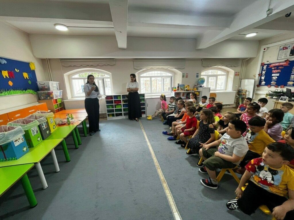 Ana sınıfı öğrencileri içinse atık türleri hakkında bilgilendirme yapılarak, eğitici ve eğlenceli etkinlikler gerçekleştirildi. Çocuklara balonlar ve boyama kitapları dağıtıldı.