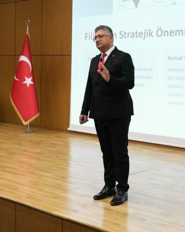 Kütahya Dumlupınar Üniversitesi Rektörü Prof. Dr. Süleyman Kızıltoprak da, Filistin meselesinin sadece bir coğrafya meselesi, bir siyasi çatışma veya diplomatik bir problem olmadığını, çağdaş dünyanın vicdanıyla, tarihi hafızasıyla ve ahlaki tutarlılığıyla doğrudan ilişkili bir insani sınav olduğunu söyledi. Bu meseleye yaklaşırken haritaları değil, insan onurunu; politik stratejileri değil, tarihi sorumluluğu temel almak zorunda olduğumuza vurgu yapan Kızıltoprak, “1880 yılında Filistin’de yaşayan Yahudi nüfusu yaklaşık 20 bin civarındaydı. 1917’de yaklaşık 60 bin idi. Bugün bu sayı 9 milyona yaklaşmıştır. Bu dramatik değişimi yalnızca doğal nüfus artışıyla açıklamak mümkün değildir. Bu dönüşüm, esas olarak Avrupa’daki antisemitizm, zorunlu göçler, sömürgeci projeler ve uluslararası güç dengelerinin bir sonucudur. Bu batının eseridir. Avrupa’nın yüzyıllara yayılan antisemit geçmişi, Filistin’e taşınmış bir sorun olmuştur. Günümüzde Avrupa’nın ve Batı’nın tarihi günahlarının bedeli, Filistinli sivillere, özellikle de çocuklara ödetilmektedir. Avrupa’nın tarihi sorumluluğu neden Filistinli çocukların hayatı üzerinden tahsil edilmektedir? Filistin meselesi sadece bir siyasi mesele değildir; aynı zamanda epistemik ve ahlaki bir sorundur. Modern dünyanın insan hakları söylemi ile sahadaki pratikleri arasındaki uçurum, Filistin örneğinde en açık biçimde ortaya çıkmaktadır. Buradaki trajedi, sadece bir toprak meselesi değil; insanlık vicdanının bir aynasıdır. Sonuç olarak, Filistin meselesi, tarihi sorumluluğun, ahlaki tutarlılığın ve insan haklarının bir sınavıdır. Bu sınavın sonucu, yalnızca bölge halkını değil, tüm insanlığı etkileyecek bir ölçekte belirleyici olacaktır. Bizler, bu meseleye sadece bir izleyici olarak değil; düşünerek, sorgulayarak ve vicdanımızla konumlanarak katılmak zorundayız” diye konuştu.