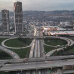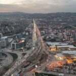 Bursa Büyükşehir Belediyesi tarafından projelendirilen Emek-Şehir Hastanesi Raylı Sistem Hattı çalışmalarının tamamlanmasıyla her iki yönde de 3’er şerit olarak normale dönen trafik, dron ile havadan görüntülendi. Çalışma sebebiyle uzun kuyruklar oluşan mevkide, trafiğin rahatladığı görüldü.