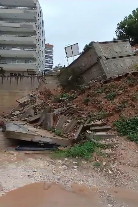 Güzelyalı Mahallesi’nde ise bir sitenin istinat duvarı çöktü. Yerle bir olan istinat duvarının altında kimsenin olmaması facianın önüne geçti.