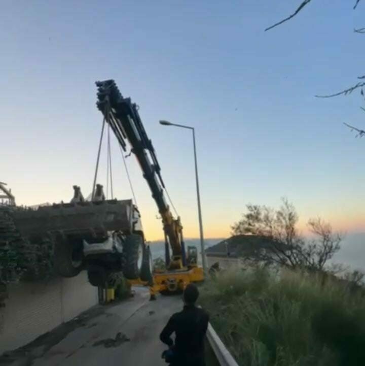 Görüntülerde, vinçte asılı halde bulunan iş makinesinin bir anda dengesini kaybederek yere düştüğü ve çevrede kısa süreli paniğe neden olduğu anlar yer aldı. Olay sırasında iş makinesinin içinde sürücünün bulunmaması ise muhtemel bir faciayı önledi.