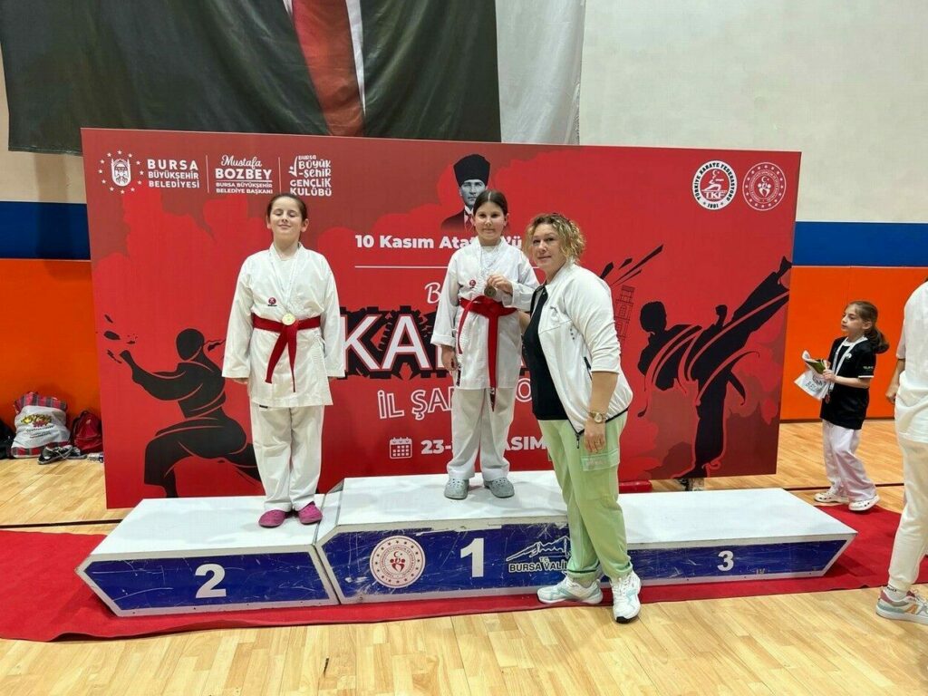 10 Kasım Atatürk’ü Anma Minik ve Yıldızlar Karate İl Şampiyonası Gürsu Kapalı Spor Salonunda yaklaşık 200 sporcunun katılımı ile gerçekleşti. Sarı, turuncu ve yeşil kemer seviyesinde yarışan Mudanyalı çocuklar ilk defa çıktıkları maçta tecrübe kazandı. Mudanya ilçe Spor Müdürlüğü’nde görev alan karate milli takım antrenörü Emel İlişgin Şengül ve sporcuları Aktif Spor Kulübü adına maça katılım sağlarken otizmli sporcu Mehmet Yekta Kahraman kata dalında birinci olarak altın madalya aldı. Şampiyonada Zeynep Dora Ferik birinci, Erva Naz ikinci Nisa Altun ve Mehmet Fatih Güngörmez ise röpezaj maçını kaybederek guruplarında 5’nci oldu.