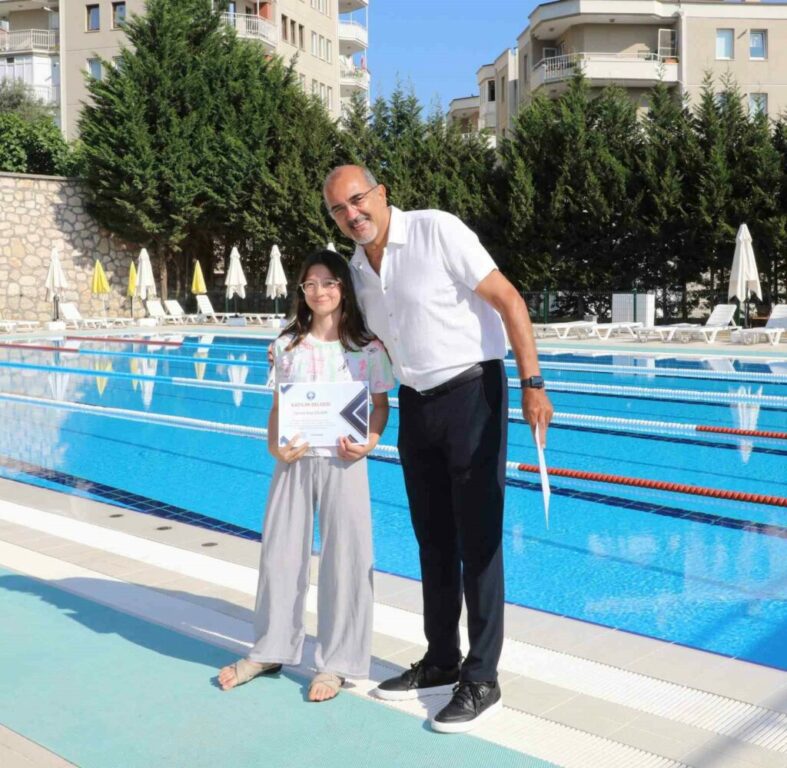 Mudanya Belediyesi tarafından 25 Haziran ile 5 Temmuz tarihleri düzenlenen yüzme kursu 1. dönemi sona erdi. Yüzme kursuna katılan yaklaşık 250 öğrenciye Mudanya Belediyesi Yüzme Havuzu’nda düzenlenen törenle sertifikaları verildi. Profesyonel eğitmenler eşliğinde keyifli ve güvenli bir yüzme deneyimi yaşayan öğrenciler sertifikalarını Mudanya Belediye Başkanı Deniz Dalgıç ve belediye meclis üyelerinin elinden aldı. Yüzme kurslarında suda kalma, su üzerinde ilerleme teknikleri öğretilirken, kendi kendine güven sağlama, suda kendini koruma yüzme stilleri eğitimleri verildi.