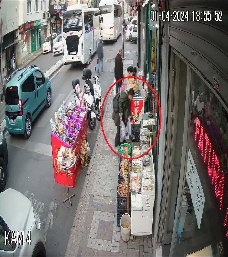 Bursa’da dükkan önünde duran zeytin bidonlarını gören kadın, önce müşteri gibi baktı daha sonra zeytin bidonunu alarak uzaklaştı. O anlar saniye saniye güvenlik kamerasına yansıdı.