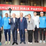 Başkan Türkyılmaz daha sonra CHP Genel Merkezi’nde Genel Başkan Kemal Kılıçdaroğlu ile bir araya gelerek, Cumhuriyet meşalesini takdim etti.