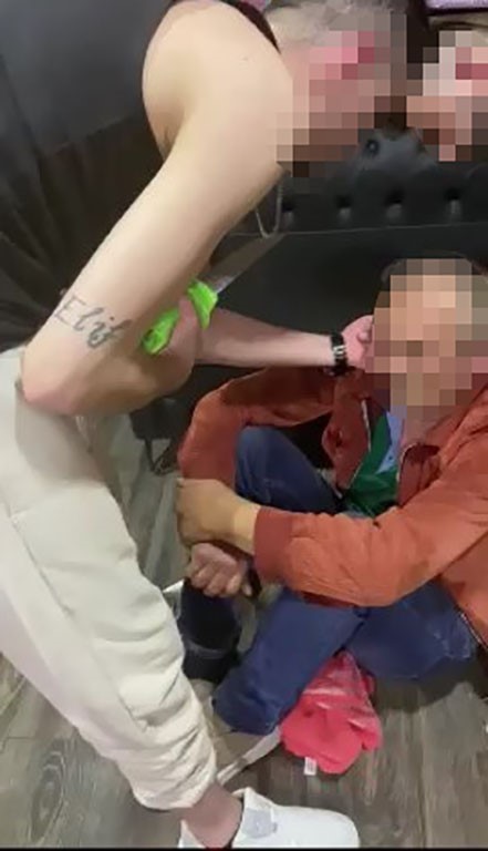 M.K. ve A.D.U., ofislerine getirdikleri Cengiz B.’yi kulağını kesmekle tehdit edip darp etti. M.K. ve A.D.U, Cengiz B.’nin burnunu ve gözlerini havlu ile kapatıp ağzına su dökerken, M.V. o anları cep telefonuyla kaydetti. Müzik açarak bir süre Cengiz B.’yi tekme tokat döven M.K. ve A.D.U, Cengiz B.’nin cebindeki bin 300 lirayı da gasp etti. Yapılan işkenceye daha fazla dayanamayan Cengiz B., bir süre sonra bayıldı. Kısa bir aradan sonra Cengiz B. kendine geldi. M.K. ve A.D.U., yüzüne maske takıp darp ettikleri Cengiz B. ile fotoğraf çekindi. Saatlerce işkence yaptıkları Cengiz B.’ye tatlı yedirip, çay ile su içiren ikili, “Bize 25 bin lira getireceksin. Aksi halde bu görüntüleri sosyal medyada yayınlarız” diyerek Cengiz B.’yi tehdit etti. Evine gitmesi için Cengiz B.’ye taksi çağıran M.K. ve A.D.U., ücreti de ödeyip evine gönderdi.