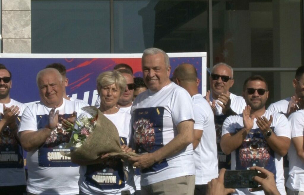 Tören sırasında Başkan Özdemir, takımın kadın başantrenörü İlknur Kurtuluş’a çiçek takdim ederek, tarihi başarısından dolayı tebrik etti. Ardından oyuncuları tek tek kutlayıp hediye verdi.