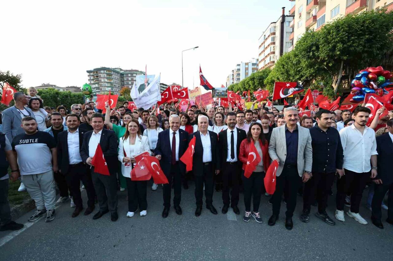 Atatürk’ün ülkeyi gençlere emanet ettiğini vurgulayan Nilüfer Belediye Başkanı Şadi Özdemir, “Hep birlikte onun izinde, onun verdiği güçle, umutla demokrasimize sahip çıkacağız. Geleceğimize sahip çıkacağız. Ay yıldızlı bayrağımızı hep önde tutarak, vatan sevgisini yüreğimizde duyarak, geleceğimiz için birlikte yürüyeceğiz” şeklinde konuştu.