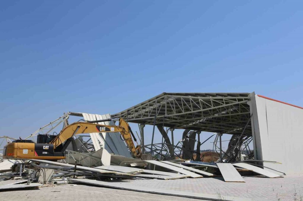 Geniş güvenlik önlemlerinin alındığı yıkımda, çevik kuvvet ve zabıta ekipleri eşliğinde kaçak yapı, iş makinesi ile yerle bir edildi.