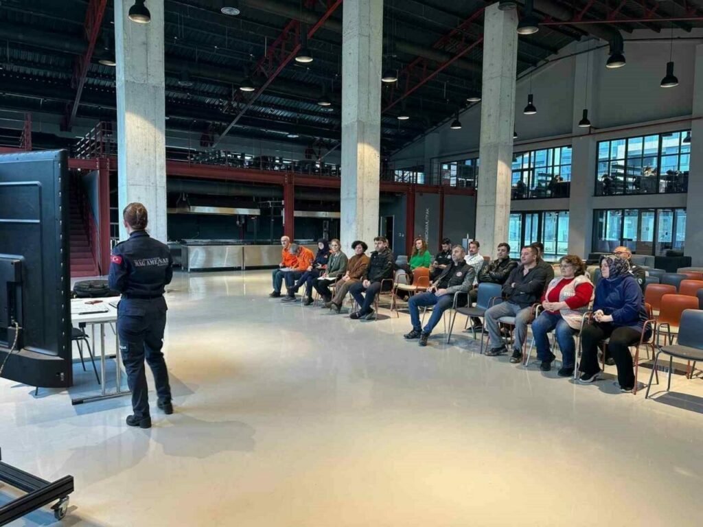 Eğitimlerde teorik bilgilendirmelerin yanı sıra, tahliye planları gözden geçirildi ve afet anında paniğin önüne geçilmesi için yapılması gerekenler anlatıldı.