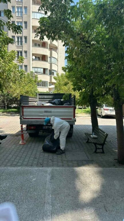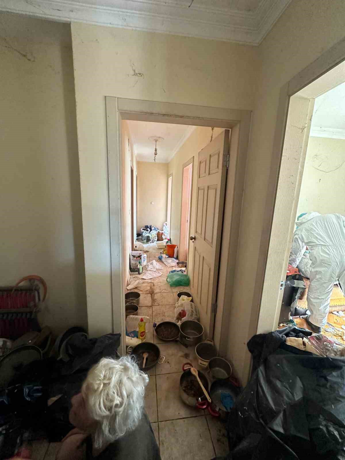 Komşuları, evde tek başına yaşayan kadının topladığı çöplerle çevre sağlığını da tehdit ettiğini söyledi. Üç oda, bir salon, banyo ve mutfaktan oluşan evden kağıt, plastik, hurda ev aletleri, yemek artıkları ve kullanılmaz hale gelen mutfak eşyaları gibi tonlarca çöp toplandı. Ekipler tarafından evden çıkarılan iki kamyon dolusu çöp Hamitler Döküm Alanı’na götürüldü.