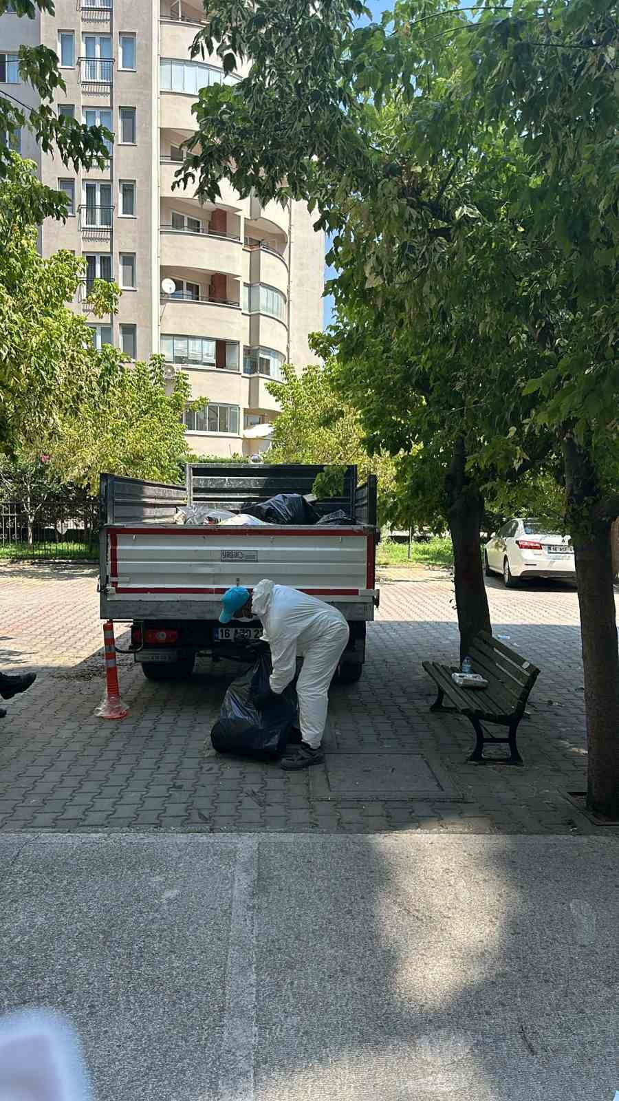 Yüzüncü Mahallesi sakinlerinin şikayetleri ve muhtar Ayşenur Sayan’ın girişimiyle tespit edilen çöp ev, Bursa Cumhuriyet Başsavcılığı’nın kararı doğrultusunda Nilüfer Belediyesi ekipleri tarafından temizlendi. Kolluk kuvvetleri eşliğinde eve giren Nilüfer Belediyesi Temizlik İşleri Müdürlüğü ekipleri, içerideki manzara karşısında hayrete düştü. Ekipler, evin çöp olarak nitelendirilecek eşyalarla doldurulduğunu tespit etti.