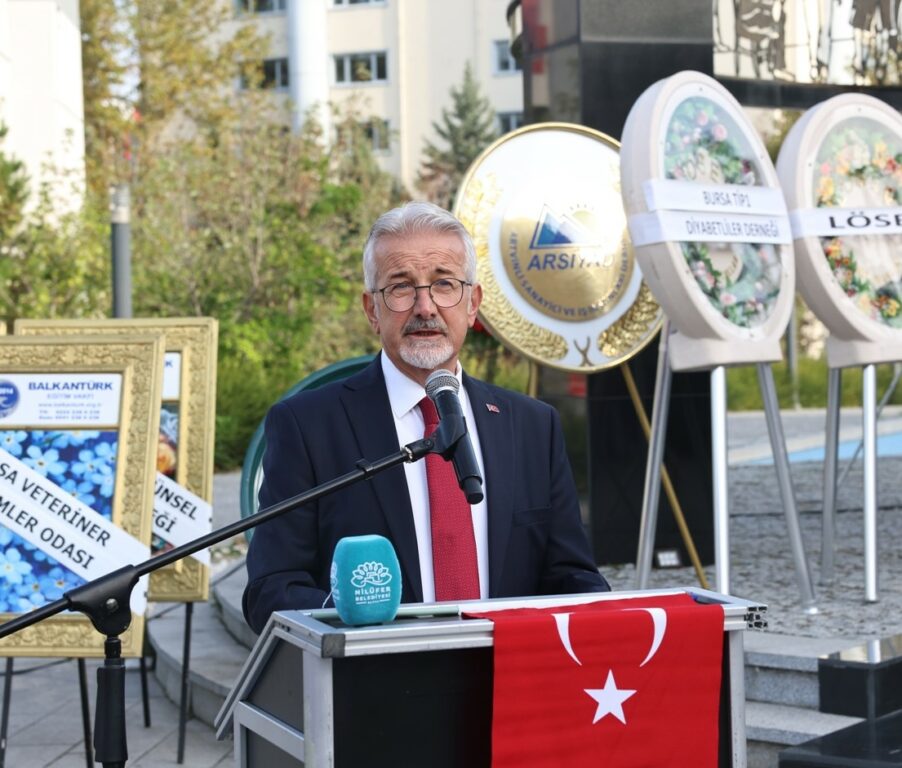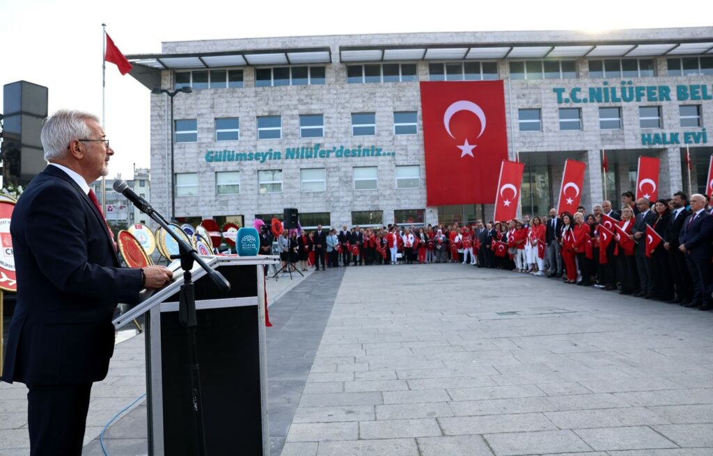 Nilüfer’de 29 Ekim Cumhuriyet Bayramı kutlamalarının ilk adresi Atatürk Anıtı oldu. Cumhuriyet’in 100. yılında büyük katılımla gerçekleşen çelenk koyma töreninde, Ulu Önder Atatürk’e minnet ve şükran duyguları dile getirildi. Nilüfer Belediye Başkanı Turgay Erdem, Cumhuriyet kazanımlarına daha çok sahip çıkılması çağrısında bulundu.