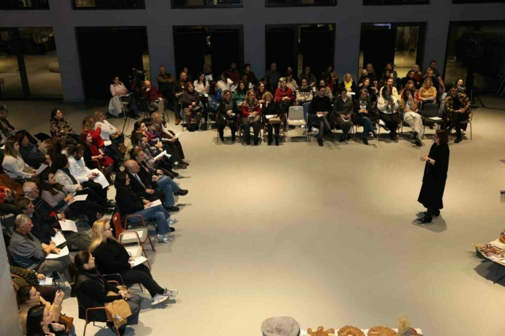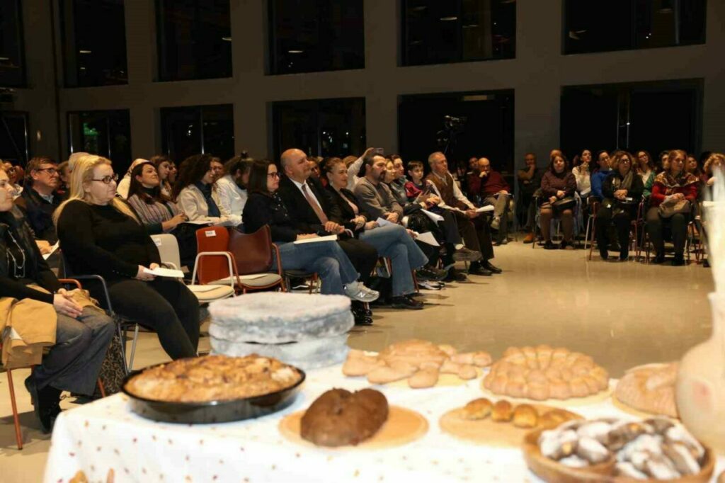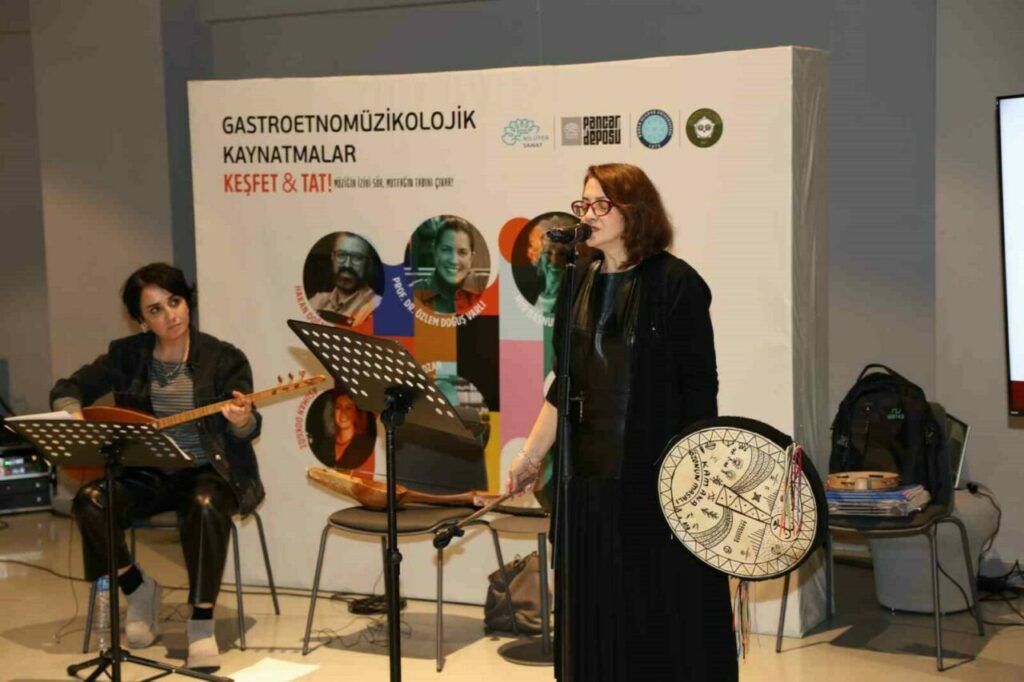 Nilüfer Belediyesi Pancar Deposu’nda mutfak kültürü ile müziği harmanlayan “Gastroetnomüzikolojik Kaynatmalar” etkinliğinde bu ay, sofraların baş tacı olan “ekmek” konuşuldu. Prof. Dr. Özlem Doğuş Varlı’nın sunumuyla gerçekleşen buluşmada, ekmeğin sadece bir besin maddesi olmadığı; ritüelleri, şarkıları ve inanışıyla toplumsal hafızanın taşıyıcılarından biri olduğu vurgulandı. Yoğun ilgi gören söyleşiye, Nilüfer Belediye Başkan Yardımcısı Bukle Erman da katıldı.