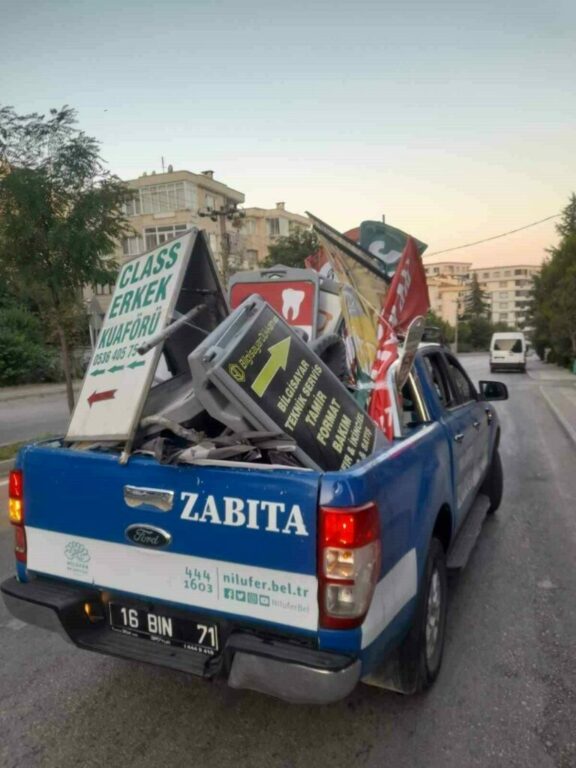 Nilüfer Belediyesi Reklam İlan ve Tanıtım Yönetmeliği, ana arterler, meydanlar ve halka açık diğer alanlara izinsiz afiş asılmasını yasaklıyor. Bu kurala uymayarak kent estetiğini olumsuz etkileyen, çevre ve görüntü kirliliğine yol açan reklam tabelalarına, el ilanlarına ve brandalara zabıta ekipleri müdahale ediyor.