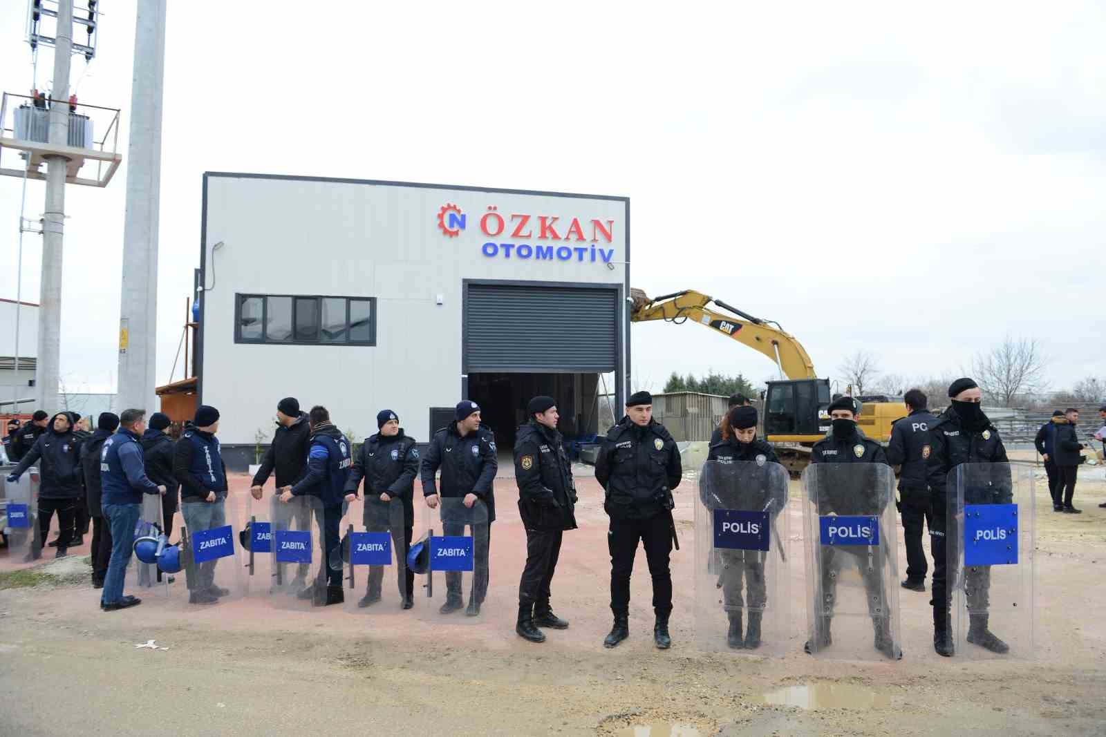 Nilüfer’de kaçak yapılara karşı savaş açan Nilüfer Belediyesi, Yaylacık ve Alaaddinbey mahallelerinde 2 kaçak yapıyı yerle bir ederken, üretimin sürdüğü bir kaçak fabrikayı ise kullanılamaz hale getirdi.
