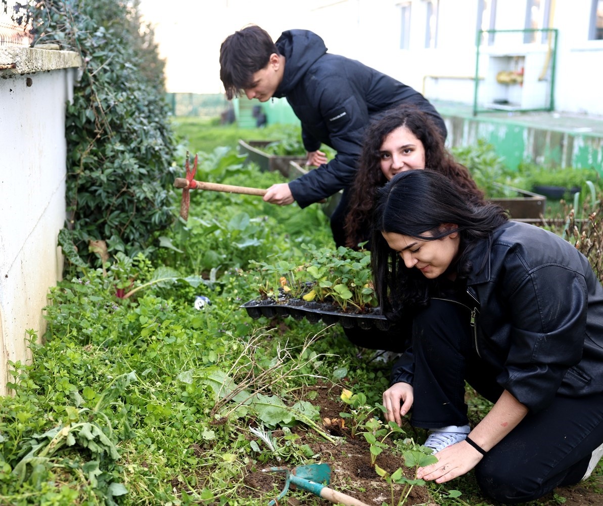 Tarımı destekleyici çalışmalarıyla Türkiye’de örnek projeleri hayata geçiren Nilüfer Belediyesi, öğrencileri de tarımla buluşturuyor. Bu maksatla okullarda da çeşitli etkinlikler düzenleyen Nilüfer Belediyesi İklim Değişikliği ve Sıfır Atık Müdürlüğü Kırsal Alan Bürosu, öğrencilere farklı bir deneyim yaşattı. Okuldan da gelen talep üzerine okulun bahçesinde oluşturulan tarım alanında enginar ve çilek fidesi dikimi yapıldı. Derslerine tarım molası veren öğrenciler, önce fide dikimi hakkında bilgi aldı, ardından da fideleri toprakla buluşturdu. Nilüfer Belediyesi çalışanları, öğrencilere ekilen fidelerin bakımı hakkında da bilgi verdi.