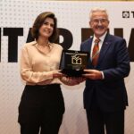 Konuşmaların ardından Nilüfer Belediye Başkanı Turgay Erdem ödülü Uluslararası Yayıncılar Birliği Başkanı Karine Pansa’nın elinden aldı.