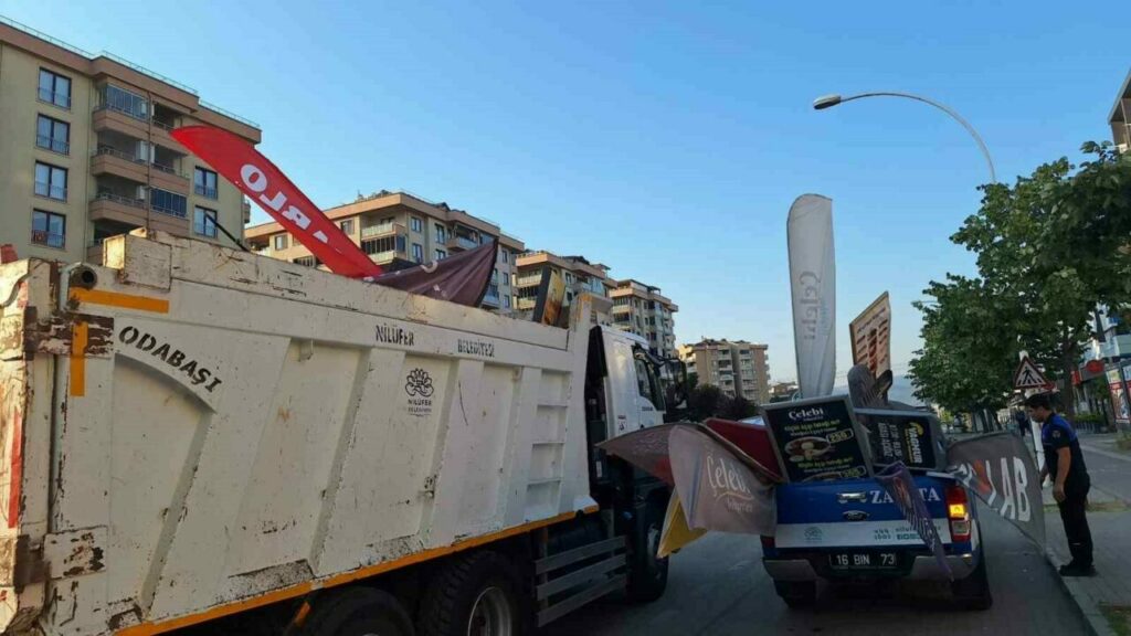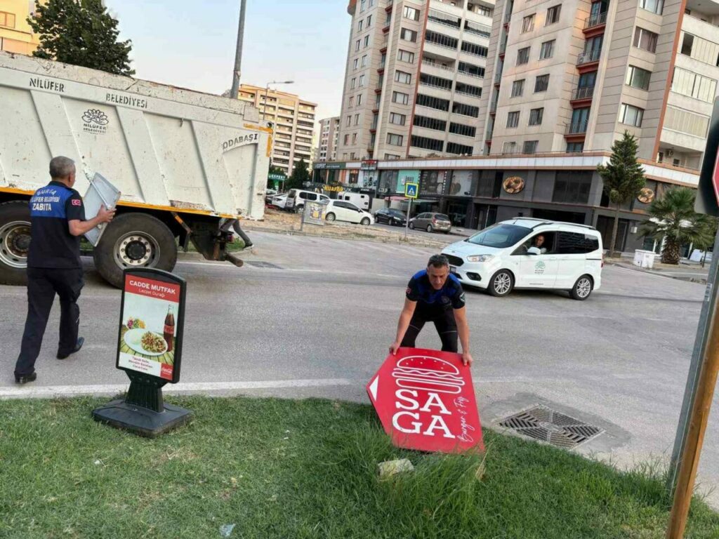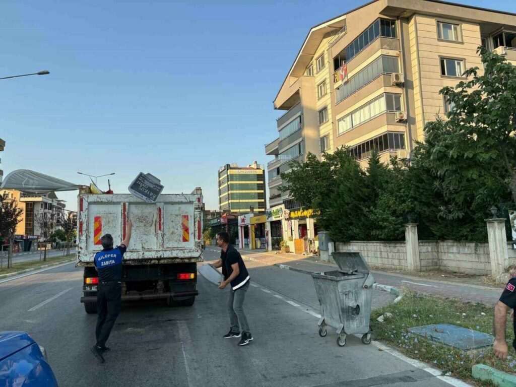 Nilüfer Belediyesi Zabıta ekipleri, 29 Ekim, Ataevler, 23 Nisan ve Altınşehir Mahallelerindeki cadde ve kaldırımlarda halk sağlığını tehdit eden ve kent estetiğini bozan duba ve tabelaları topladı.