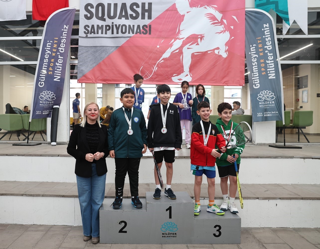 Dereceye giren sporculara ödüllerini veren Nilüfer Belediye Başkan Yardımcısı Dr. Sibel Özer, başarılarından dolayı kutladı. Nilüfer Belediyesi olarak squash sporuna destek veren önde gelen kurumlardan biri olduklarını ifade eden Sibel Özer, spor kent olma yolunda hızla ilerlediklerini belirtti.