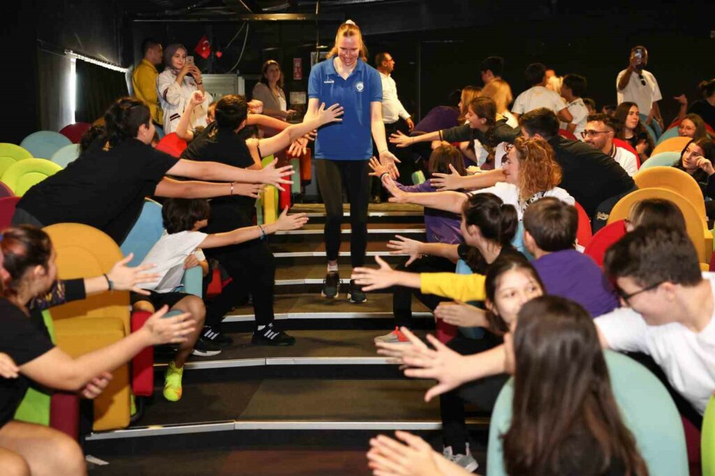 Nilüfer’in sultanları, iyi bir sporcunun özellikleri ile okul ve sporun aynı anda nasıl yürütüleceğine dair gelen soruları da, “Okul ve sporu aynı anda götürmek, kişiye sorumluluk ve disiplin katıyor. İyi bir sporcu olmak için sadece sahada başarılı olmak yetmez. Eğer eğitiminiz devam ediyorsa herkesten daha fazla çalışarak, okulda ve derslerinizde de başarılı olmak zorundasınız. Spor, hayatınızı düzene sokuyor. Beslenmeden uyku sağlığına, günlük programdan özel yaşantına kadar yaşamınızdaki her şeye dikkat etmek zorunda oluyorsunuz. İyi bir sporcu olmak için sadece fiziksel yapı yeterli değil. İletişim, saygı, güven, hırs, sorumluluk ve disiplin çok önemli” şeklinde yanıtladılar. Nilüfer’in sultanları, sporda iletişimin, stres yönetiminin, motivasyonun ve hedefe odaklanmanın önemine de vurgu yaptı. Nilüfer Belediyespor Voleybol Takımı’nın baş antrenörü Vital Heynen de, maçlara hazırlık sürecini öğrencilerle paylaştı. Heynen, “Siz, derslerinize çalışıp, sınavlara giriyorsunuz. Biz de sporcularımızı her maça ayrı hazırlıyoruz. Başarılı olmak için yapılması gerekenleri anlatıyoruz. Sonunda da maça çıkarak, bir nevi sınav veriyoruz” diye konuştu. Heynen, bir öğrencinin talebini geri çevirmeyerek, sporculardan Cansu Bir ile birlikte kısa bir süre sahnede voleybol oynadı.