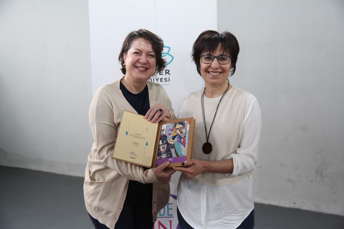 Yazar Ayşen Işık söyleşi sonunda ‘Ne yeni ne başka’ adlı kitabını etkinliğe katılan kadınlara imzaladı.