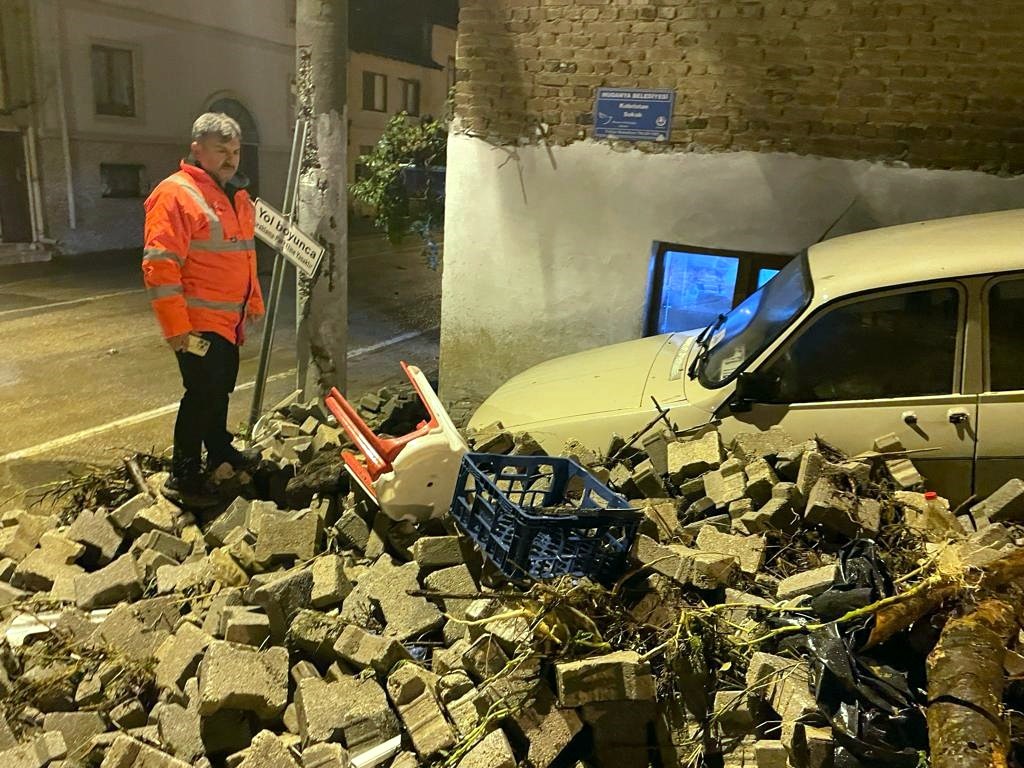 Dün gece yağan şiddetli yağmur sonrası yaşanan sel Rumlardan kalma tarihi evleri ve kiliseleri ile ünlü Mudanya’nın Tirilye Mahallesinde zarara yol açtı.