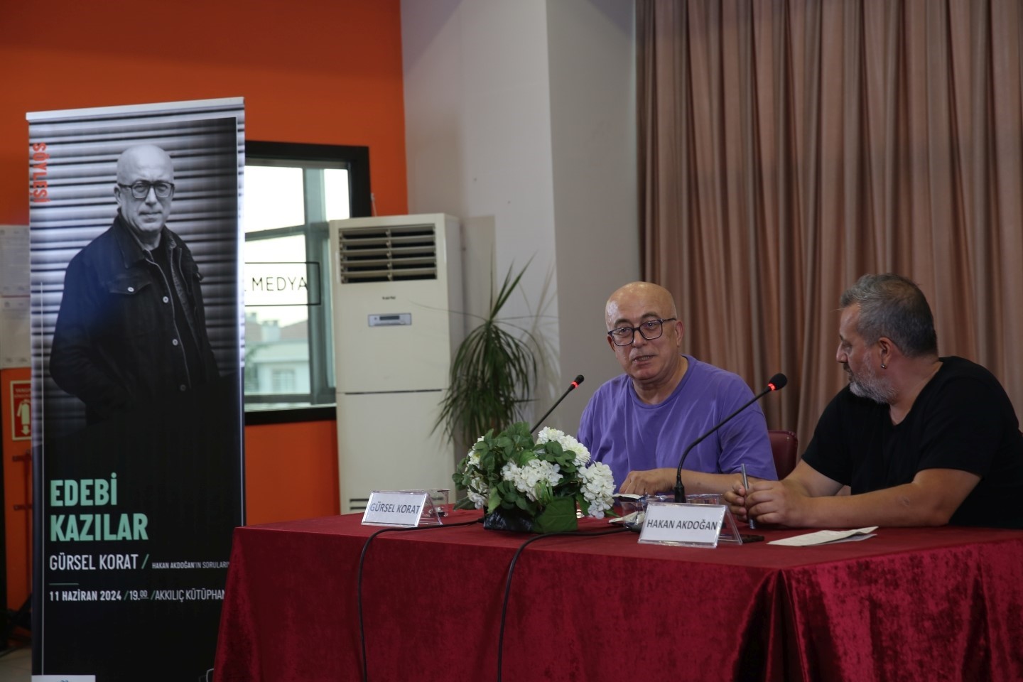 Nilüfer Belediyesi’nin düzenlediği Edebi Kazılar söyleşisinde Gürsel Korat, Hakan Akdoğan moderatörlüğünde okurlarıyla buluştu. Korat, edebiyat, zaman ve mekan üzerine derinlikli bir sohbet gerçekleştirdi.