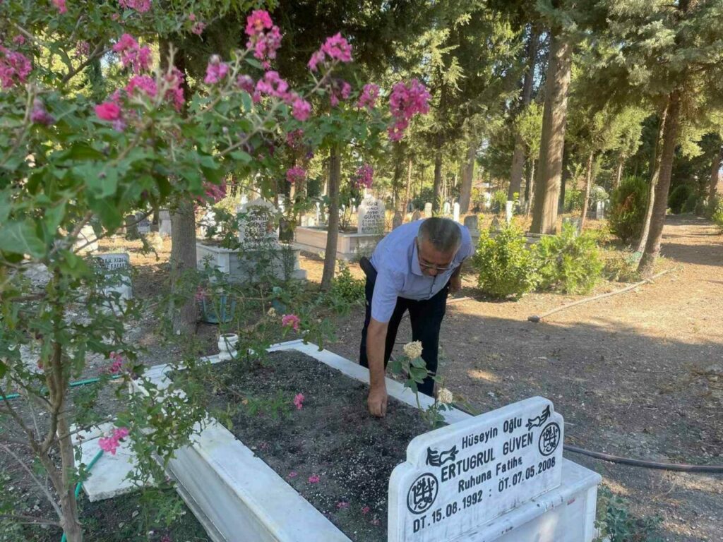 Yamanlı Mahalle Muhtarı Necati Eren, Hüseyin öğretmenin, oğlu vefat ettikten sonra adeta kendini mezarlığa adadığını sadece çocuğunun değil tüm mezarlığa özen gösterdiğini anlattı.