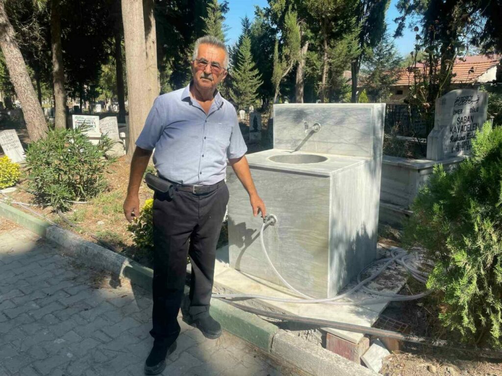 Mezarlığa gelenler su içsin, abdest alsın diye mermerden sebil yaptırdıklarını anlatan Güven, suyun boşa akmadığını fidanların, çiçeklerin sulamasında kullanıldığını söyledi.