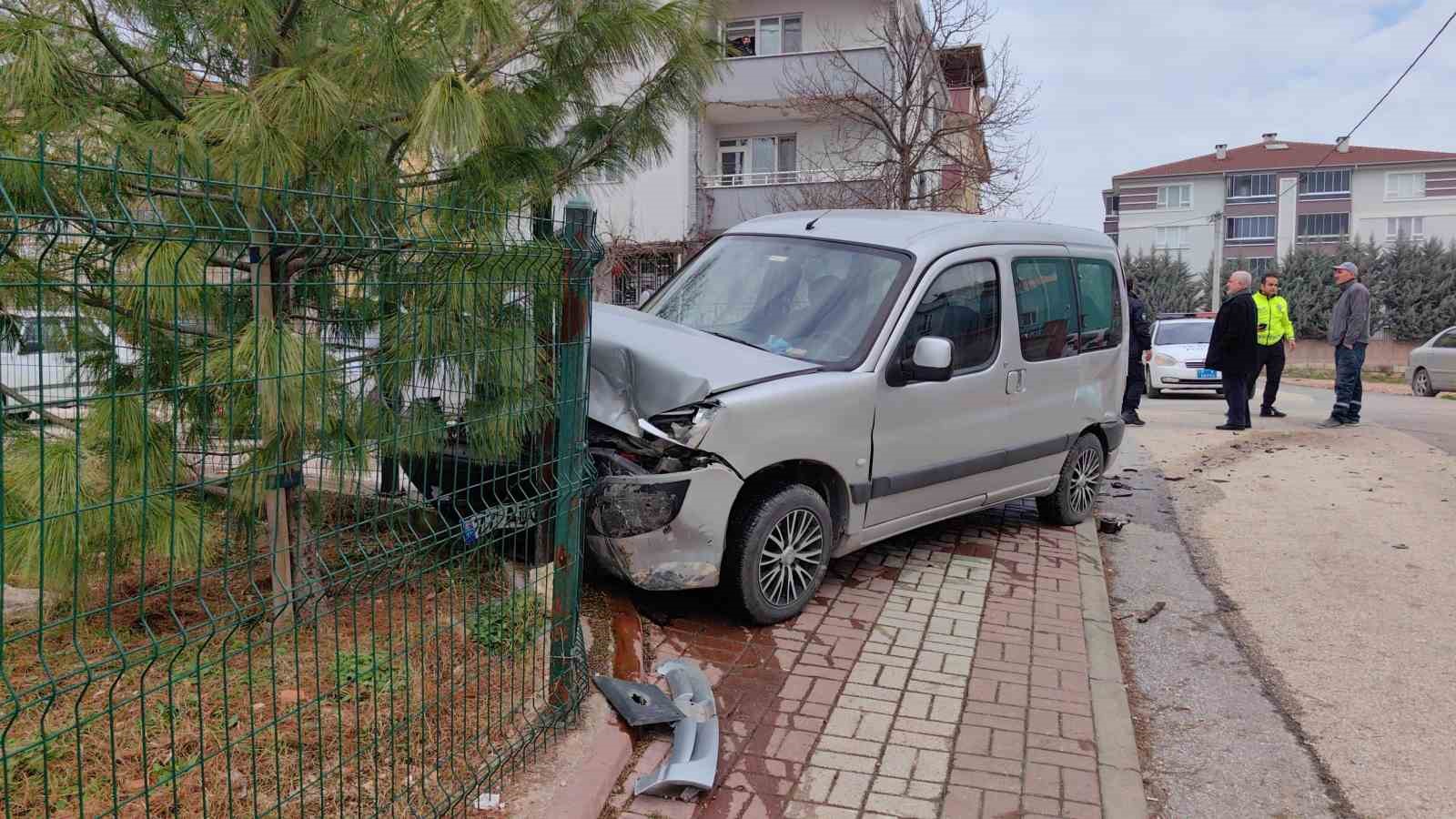 Çarpışmanın etkisiyle savrulan araçlardan servis minibüsü evin bahçe duvarına, diğer araç ise parkın tel örgü duvarına çarparak durabildi.