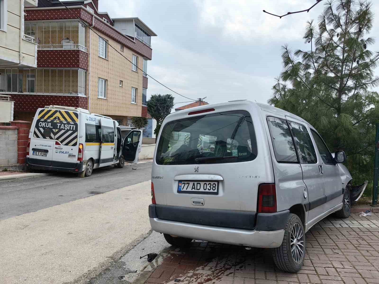 Edinilen bilgiye göre, Sancak sokaktan çıkan sürücü Y.G. (21) yönetimindeki 77 AD 038 plakalı hafif ticari araç, Gülfidan sokakta seyreden sürücü Ç.T. (45) yönetimindeki 16 S 6166 plakalı okul servis minibüsü ile çarpıştı.