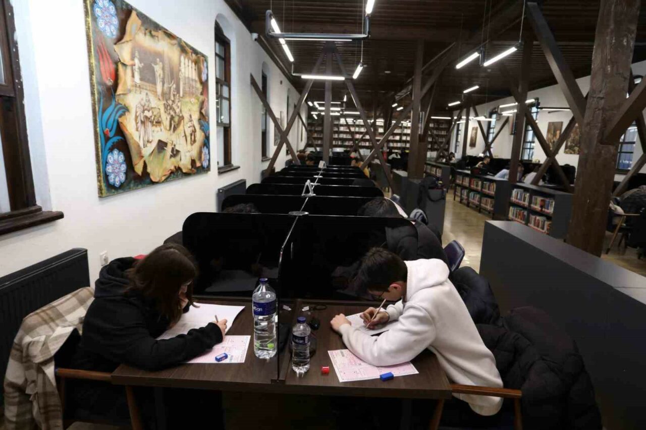 İnegöl Belediyesi’nin Nöbetçi Kitaphanelerde belirli aralıklarla gerçekleştirdiği sınav simülasyonları kapsamında bugün TYT simülasyonu gerçekleştirildi. 150 öğrenci zorluk derecesi ve uygulamasıyla gerçeğini aratmayan deneme sınavında seviyesini görmek için ter döktü.
