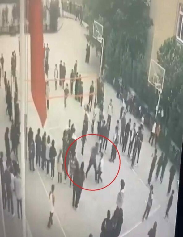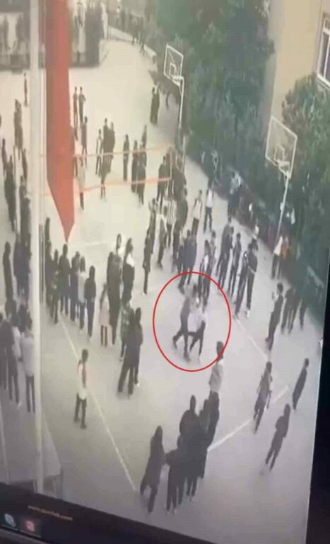 Güvenlik kamerası kayıtlarında, öğretmenin koşarak öğrencisine tekme attığı, ardından tokatladığı görüldü. Aldığı darbelerle yere düşen öğrenci, daha sonra aksayarak arkadaşlarının yanına gitti.