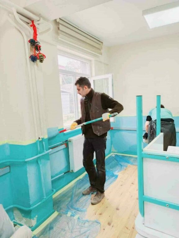 Bursa’nın İznik ilçesinde bir köy okulunun müdürü ve yardımcısı okulu boyadı.