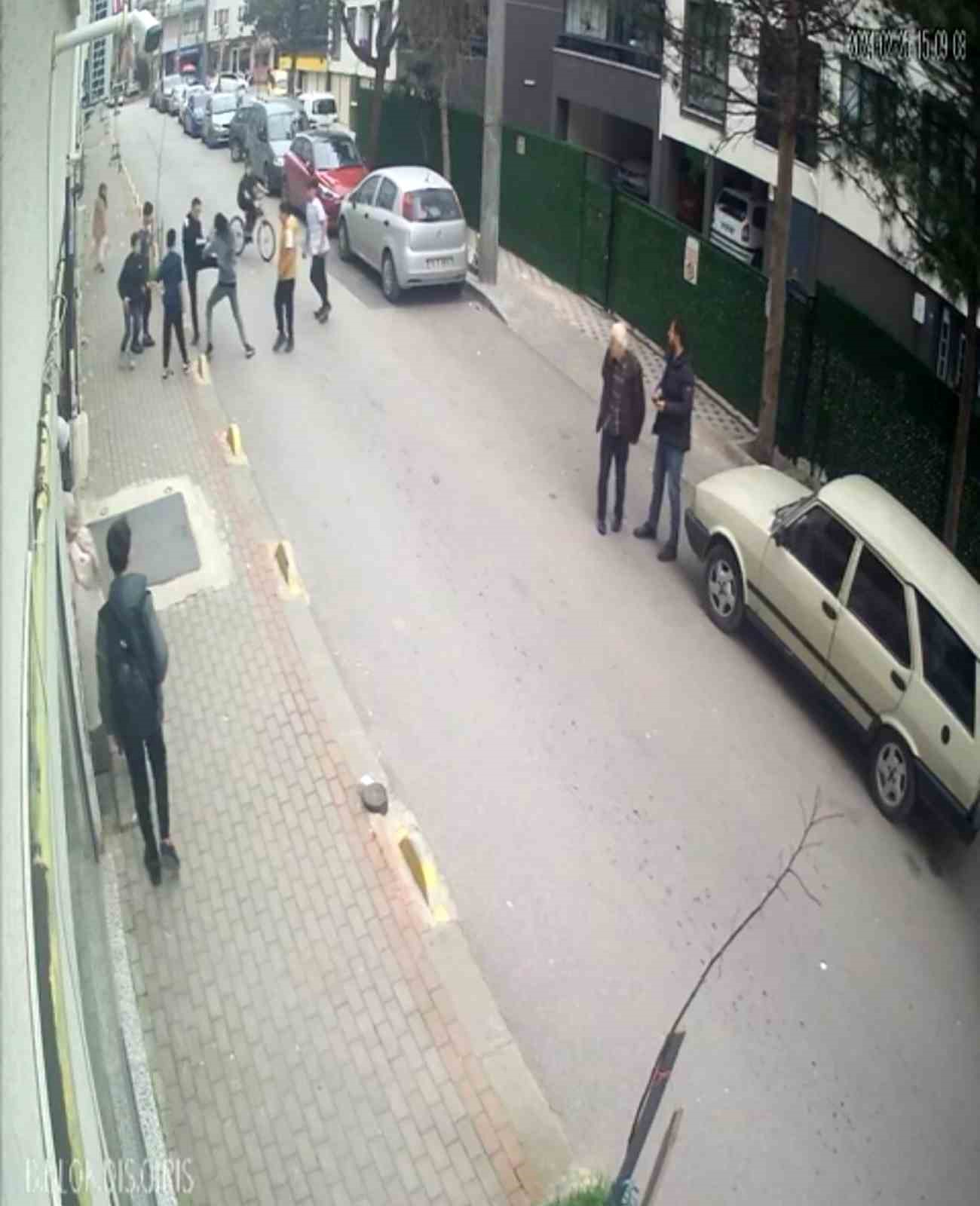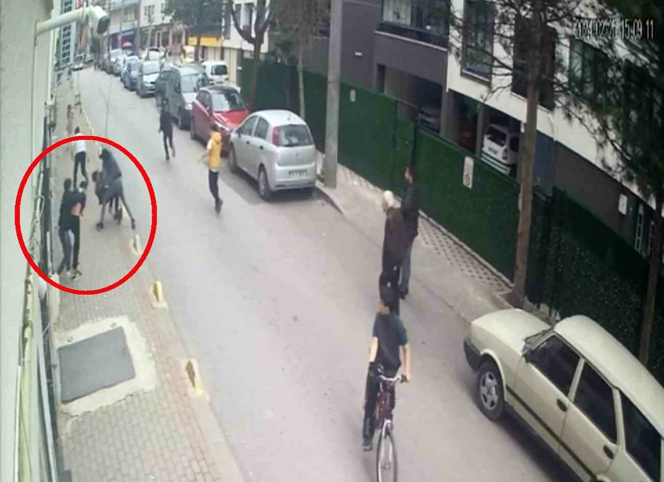 Öte yandan, iki yaşı küçük grubun cinayetle sonlanan kavgası bir iş yerinin güvenlik kamerasına yansıdı. Sokak üzerinde karşılaşan iki grubun birbirine girdiği anlar ile E.U.’nun elindeki bıçak ile Abdullah A.’yı yaralaması anbean kameraya yansıdı. Olaydan sonra şüpheli grubun kaçtığı kanlar içerisinde yere yığılan 13 yaşındaki Abdullah A.’ya ilk müdahaleyi yanındaki arkadaşlarının yaptığı görüldü. Evinin balkonundan görüntü alan bir kadının görüntü çekerken bir yandan da feryat etmesi dikkat çekti.