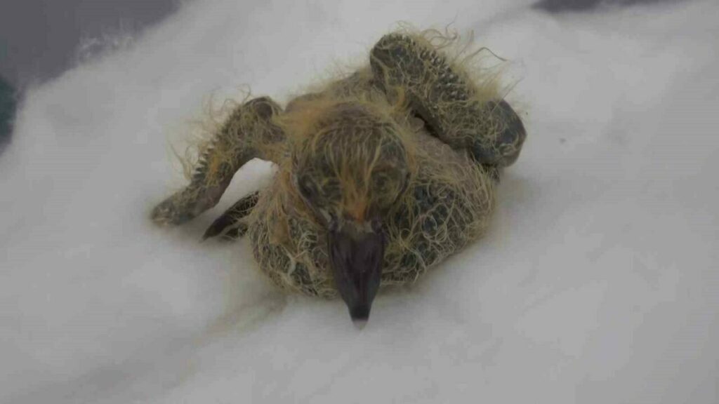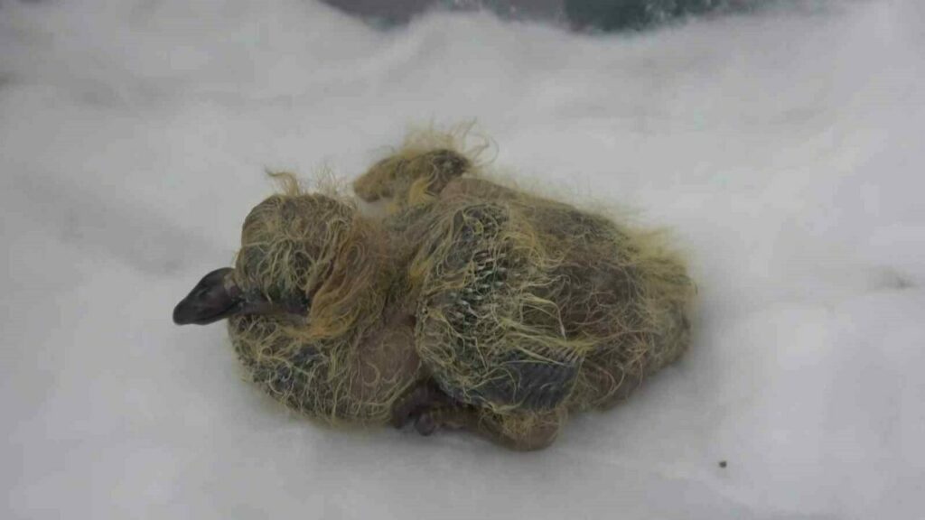 Bursa’da oğluna misafirliğe gelen Yusuf Ovalı, evin arkasında ölmek üzere bulduğu yavru güvercini pamuklara sarıp ağzıyla besleyerek hayata döndürdü.