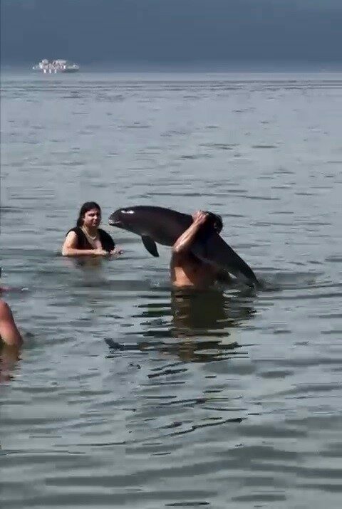 Olay, Mudanya ilçesi Güzelyalı Sahili’nde meydana geldi. Bir vatandaş, ölmüş yunus balığını sırtında taşıyarak kenara getirdi. İlginç anlar, saniye saniye amatör kamera ile kaydedildi.