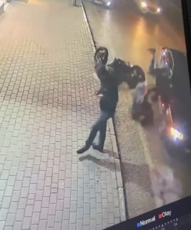Bursa’da motosiklet ile otomobilin çarpıştığı kazada iki kişi yaralanırken kaldırım üzerinde duran bir kişi kazadan kıl payı kurtuldu.