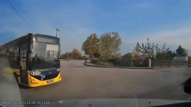 Bursa’da ailesiyle birlikte ilerleyen otomobil sürücü, yola çıkan otobüsle kafa kafaya çarpışmamak için direksiyonu kırdı. Ölümle burun buruna gelinen o anlar saniye saniye araç kamerasına yansıdı.
